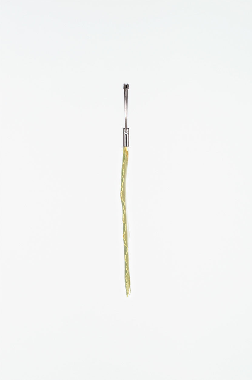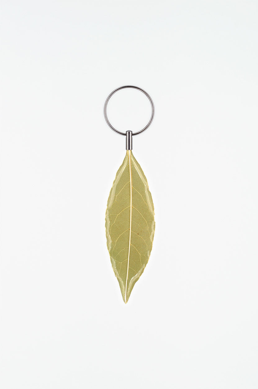 The leaf is naturally dried and moulded to maintain its three-dimensional, organic shape. Carefully preserved by hand in several layers of non-toxic resin, the piece is adorned with a silver wire applied along its backside and finished with an end cap as well as a split ring made of stainless steel. This allows the pendant to be worn on chain or belt loops, zipper pulls, necklaces and much more.