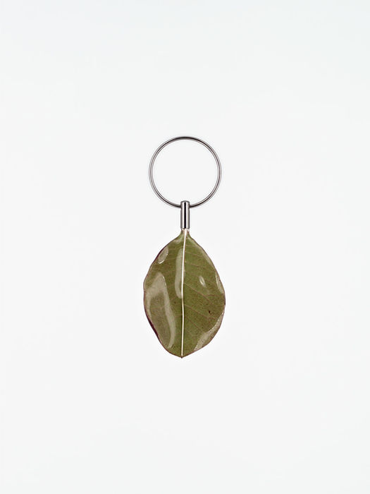 The leaf is naturally dried and moulded to maintain its three-dimensional, organic shape. Carefully preserved by hand in several layers of non-toxic resin, the piece is adorned with a silver wire applied along its backside and finished with an end cap as well as a split ring made of stainless steel. This allows the pendant to be worn on chain or belt loops, zipper pulls, necklaces and much more.